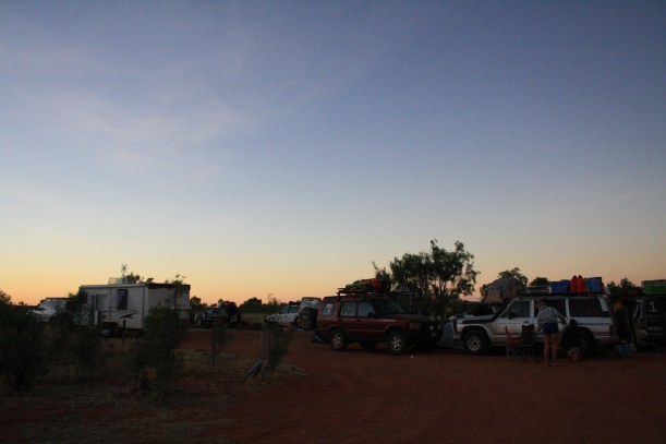 The sun had set but in the last light of day a 4wd pulled in near us, that’s ok, soon followed by another. I had no sooner commented on the fact that both the cars had numbers duct taped on their back windows, one being 4 and the other 6 (“I wonder where car 5 is?”) when in a cloud of dust comes cars 1 to 10 to join them. By now we were surrounded and feeling just a tad nervous. As the assembled group were throwing out tents, chairs, tables etc… one of the pack came over to us and introduced himself. Joel from Germany and his backpacking German mates (all 20 somethings) were on a road trip themselves and seeing Australia. They had all met during their travels, decided to buy 4wds and see Australia in a convoy – great idea, safety in numbers and helping each other out through the trip. A very good bunch of people, they were all quiet and settled down pretty early in the night and out of our way by the time we wanted to leave in the morning.