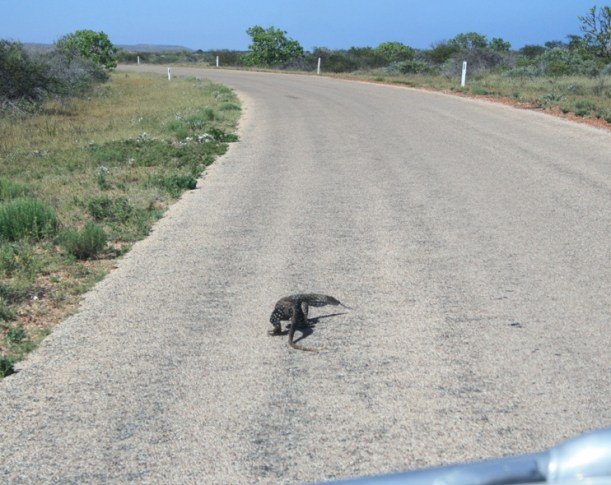It is therefore even more important to be especially watchful at dawn and dusk. However sometimes they are just gonna be there because they can! Take for instance this monitor lizard just ambling down the road as we drove into Cape Range National Park. Or the emus for that matter in the towns of Denham and Exmouth who just wander around the streets of town and do what they please.