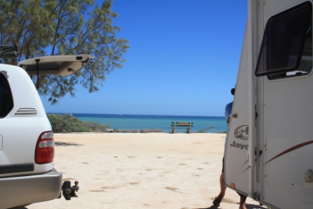 The view for us was a sandy track to a glaringly white beach and shades of blue of green water you have to see to believe. Our days here were spent traipsing back and forth from caravan to beach to caravan to beach sunset and back again, like groundhog day – the one you want to have repeated over and over again.