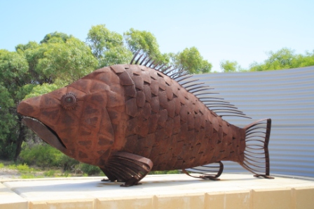 Another brilliant animal sculpture is in Cervantes WA. This big fish sculpture acknowledges the importance of fishing in the town (a big lobster industry thrives here) and also to remind everyone to conserve fish stocks and appreciate the environment. It was designed and constructed by Murray Ford from local recycled agricultural materials. Another unmissable entrance to a town.