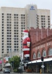 The city of Adelaide gets decorated with other signs of Christmas including a giant Christmas tree which is lit up each night in the city’s main Victoria Square. And a giant Father Christmas stands tall to greet everyone in the city. He has had a few homes over the years but nowadays he is on the façade of the Adelaide Central Market.