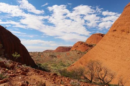 There are two walks to take at Kata Tjuta the Valley of the Winds walk and Walpa Gorge. The Walpa Gorge walk is around 2.6 kilometres return and takes about an hour to complete. The Valley of the Winds walk gives spectacular lookout views and there are two options, one a 5.4 kilometre return trip to Karingana lookout which takes around 2 and a half hours and has some very steep sections to negotiate or there is a shorter option to Karu lookout.