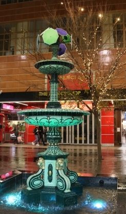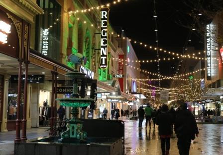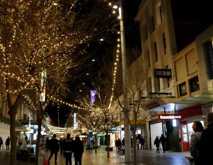 Some other city buildings had lit up facades and were lovely to see too. Rundle Mall is the main shopping strip in the city and that too is dressed up to throw a bit of light on a cold and gloomy wintry city.