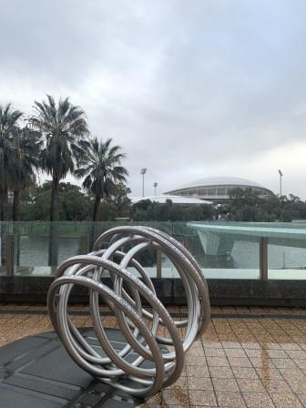 The riverbank areas have slowly been getting facelifts over the years including the bridge over the Torrens River that leads to Adelaide Oval, and the addition of sculptural pieces like these metal orbs created by artist George Popperwell, and named Drift.