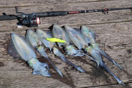 The first caravanner staying there told us that we’d only have to spend an hour or two on the jetty to come back with half a dozen squid. Well he wasn’t wrong and we did come back with exactly 6 squid on our first attempt. Later in the afternoon we decided to try our luck again, as we were only staying one night, and again we were rewarded with 4 more squid, and one which was returned to the water to grow a bit bigger.
