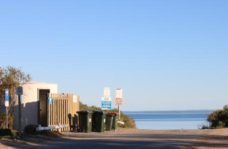 We were only the second caravan to pull into this unremarkable looking camping area, but by later in the day another three or more campers decided to stay as well. Not being much more than a gravelled parking lot with a ring of trees on the edges, this area didn’t really look terribly appealing but it does have public toilets (in a rainwater tank) to use, a small playground complete with fitness equipment, a dump point and one prolific jetty.