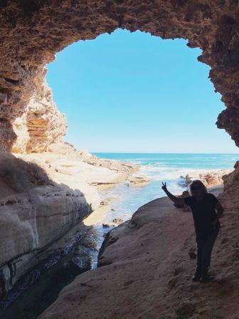 As well as this walk you can drive to see rock features like Needle Eye, then continue the drive to Mt Camel Beach and finally to the Talia Caves area. Here you’ll find the spectacular Woolshed Cave which you can access via a set of steps onto flat rocks and then it’s just a short walk around the corner, take a look inside. You do have to be careful and tread safely; a slip here would not end well.