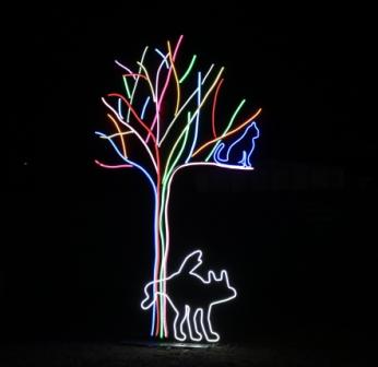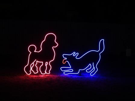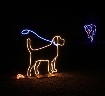 Illuminate Tumby was a mix of illuminated street art, augmented reality which needed an app and scanning of a QR code to bring 3D sculptures to life, and projections to music. There was also an illuminated dog park, made up of neon tubing dogs, trees and more, a real hit especially with the kids. Nothing was left out including a neon cat up a tree which a dog was peeing on, and even a neon dog which had left behind a nice pile of neon poo!