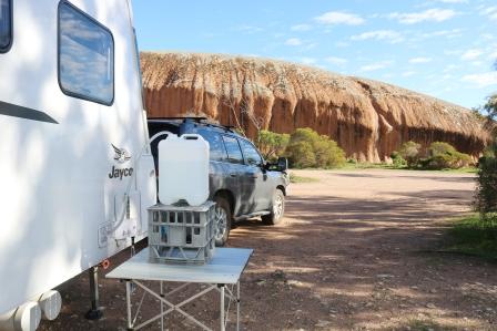 To successfully free camp for a number of days you need 12 volt power in the caravan and a battery or batteries that can be charged from solar panels. Our caravan has a panel fixed on the roof and if we are expecting to free camp for a long period, we also carry extra fold out panels to boost the batteries.