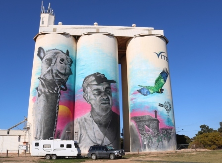 The Waikerie silos are a real treat for the eyes with all sides covered in the story of this part of the state. The silos were painted by two different artists, but both portray the lifestyle, animals and birds that are found in the region.