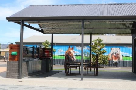 The map of the roads and sites in the caravan park make it easy to find your spot and there are one way arrows to direct you around. As the park is set up where old horse stables used to sit, the streets are named after horse breeds and there is some colourful themed art on the buildings too.