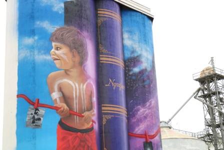 These 30 metre silos were painted by artists Jarrod Soden and Matthew Knights, both from Adelaide, and took 140 hours to complete.