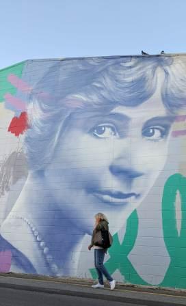 This mural of Muriel Matters was painted as part of the Adelaide Fringe Festival in January 2018.