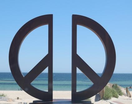 ‘This sculpture isn’t complete without you, by standing in the middle you become the centre line of peace, acknowledging in order for our world to gain peace it starts with you’.