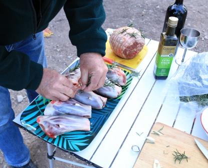 Therefore a very tasty saltbush, rolled lamb roast was on the menu one night which we also added some lamb shanks to. To prepare them, lots of home grown garlic was poked into slits cut into the roast and shanks, and fresh rosemary was also tucked into the cuts.