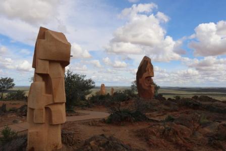 Twelve sandstone artworks stand on top of a hill in the desert, highlighting the skyline and drawing visitors out to this region. The sculptures which are 12 kilometres from Broken Hill, were created in 1993 by Australian and international artists.