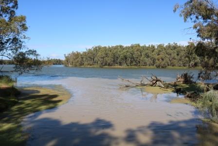 The two rivers are separated by Junction Island and it’s here, that you see the distinct colour difference which is due to the Darling River bed being clay based and the Murray River sand based.