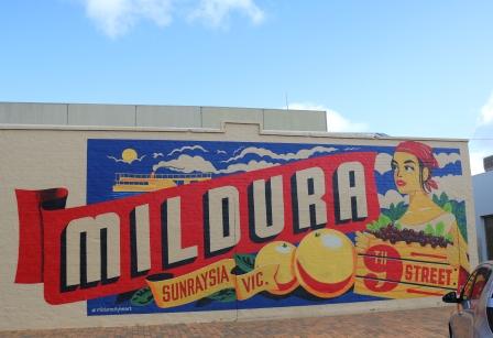 There are quite a few locations in town where you can find terrific examples of street art, some with stories and others harder to find out about. The Mildura mural was painted in 2019 and was inspired by early marketing of the region. It was designed by Travis Price as a celebration of the regions industry and tourism.