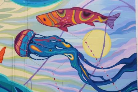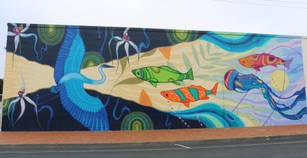 The other amazing artwork is called ‘Wind Dance’ and was painted by Sarah Boese in December 2020. The mural acknowledges the local nature, Aboriginal culture and lifestyle with a heron, a bird important to the Meintangk people, spider orchids and fish kites that refer to the kite festival that takes place in Kingston.