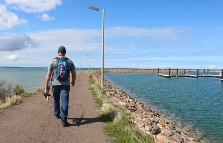 A new building sits a little further away which will be a café overlooking the boat marina and the jetty beyond that. The jetty is a bit of a hike even from the car park area but it is really wide and has lots of space for fishers to use. Sadly it didn’t provide anything for us this time and we were sceptical about our chances of catching squid as there were no telltale signs of ink on the jetty.
