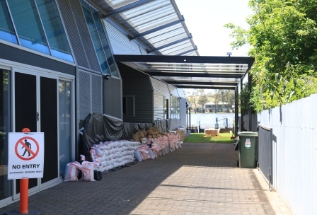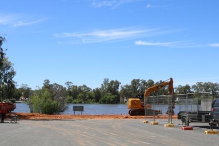 Currently a levee bank is being prepared along River Lane next to the Mary Ann Reserve and also parallel to the river near the ferries and Arnold Park, so access to these areas is blocked to traffic. Both of these areas are usually very popular with visitors, with a market and other events regularly held in these picturesque spots. The effect of the rising river is very noticeable though, with the ferry access roads quite a long way underwater already.