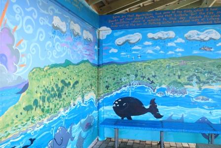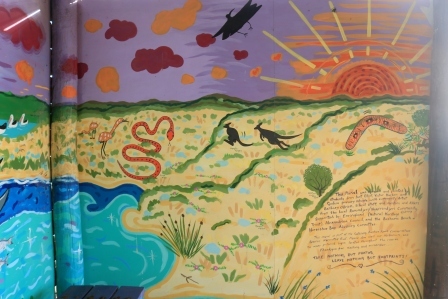 If you take a walk in the other direction from Horseshoe Bay, the walking path takes you to a couple of clifftop lookouts over the bay and then descends to Crockery Bay, which is also littered with fish at the moment. Make sure to take a look inside the shelter shed at Crockery Bay for some fabulous artwork and indigenous stories by local artists, school students and local elders. Awesome work!