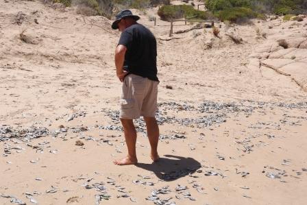 This is due to all the fresh water coming out of the Murray River from the flooding event, and making its way out of the mouth and along the coast. Dead fish unfortunately are littering the beaches from Goolwa through to Middleton, Port Elliot and all the way through to Victor Harbor and beyond.