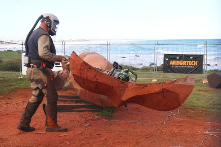 The timber that they’re carved from, was a large river red gum tree which fell on a property in the south east of the state and the owner donated it to the township of Middleton for the project. The perfect site for the sculpture was chosen next, which was a raised part of land near the coast where the whales can often be spotted in winter.