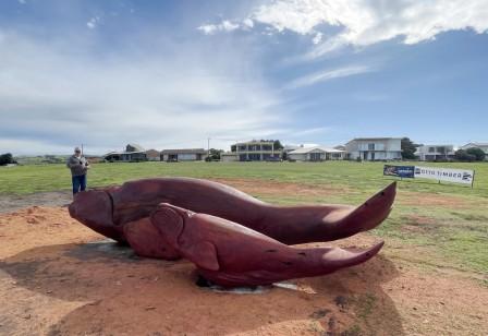 Well you’re absolutely guaranteed to spot whales at Middleton now with a timber sculpture of two of the frequent Southern Right whale visitors, Bobby and her calf Buttons, on permanent display.
