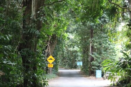 Any time youโre out driving, keep an eye out for cassowaries, we were lucky enough to spot one and its chick holding up traffic as it crossed the road one evening.