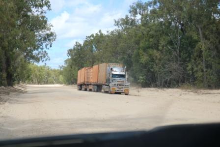 We continue our journey back down the track and still keep seeing bits and pieces on the rough roads including caravan plumbing pieces and the foot off a stabilizing leg of a van or camper trailer. We pass road trains that look like they’re standing still, they are going that slowly over the corrugations.