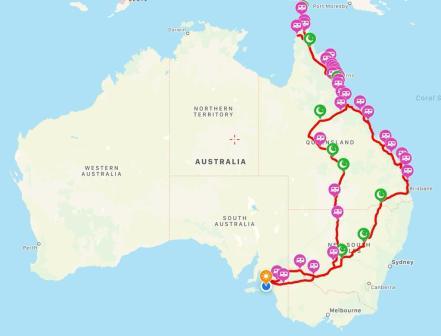 So here are a few of the stats for the trip to give you an idea of the vast distances we travelled and some of the costs involved.