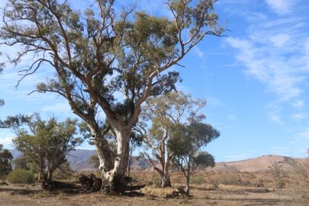Surrounding the campsites are towering gum trees and behind us, views towards the Elder Range. You can simply stay here and just enjoy the serenity, watching the plentiful birdlife and the occasional kangaroo visitor or roaming emus with chicks during the day, and then huddle around a campfire under a sky full of stars at night. But with so many tracks open to explore the station, you won’t want to stay still for long.