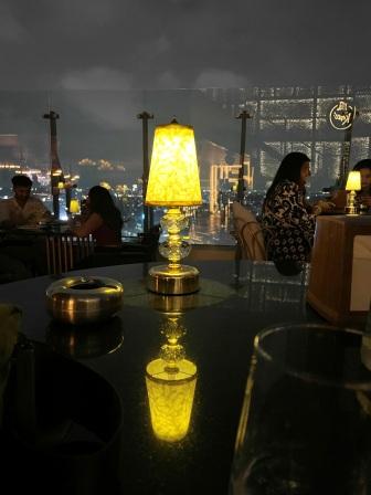 The highlight of one evening out, was finding Skyye Bar which we went to for a closer look at the unmissable nearby Kingfisher Towers, complete with replica White House built on top. On entering Skyye Bar on the 16th floor we were met with pumping popular music, and a busy dance floor on this rooftop bar, complete with disco light up floor. What a buzz. This was a real pinch me moment and the moment it actually hit us that here we were standing on a rooftop bar in India, enjoying a gin on a balmy evening with great music and a happy crowd, a world away from our usual lives – literally!