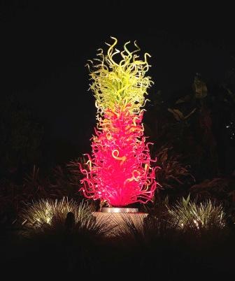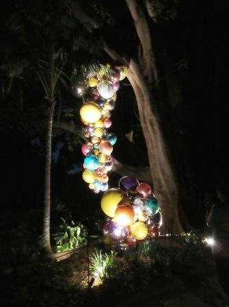As you enter the garden you can pick up a map which will direct you to each of the artworks, and at night time it’s as simple as following the festoon lights which brightly light the way. There are displays indoors and out with quite a few sculptures to see in the Bicentennial Conservatory, and the amazing glass chandelier made especially to suit the iconic glass Palm House.