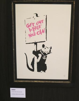 Amongst the Banksy pieces are some of his popular street ‘rat’ series and other pieces of his always controversial, political and socially charged art. The Fr-Agile mouse piece is a political statement on the resilience of Ukraine civilians and money raised from sale of prints went to an organisation supporting Ukraine.
