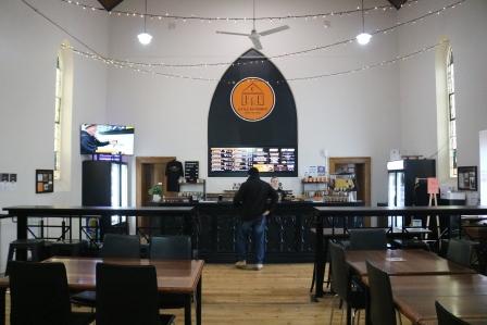 When you visit now, you have plenty of choices of where to sit and enjoy the friendly hospitality and tasty brews. Inside the restored limestone church you can get cosy in front of a combustion heater during the cold winter days, or when the sun is shining, the beer garden is the place to be. For those who can’t decide there is even an undercover outdoor space, complete with a toasty warm wood fire.