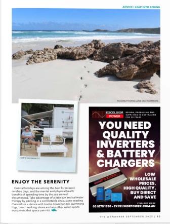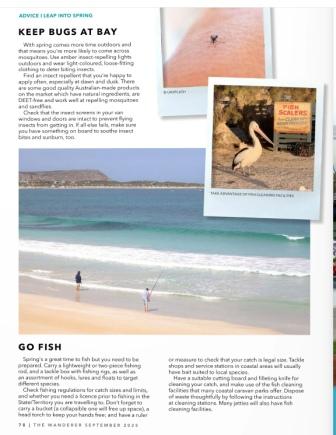 The September edition of The Wanderer magazine is out now for members of the Caravan and Motorhome Club of Australia, and inside I have a story on preparing for caravan holidays in spring, especially when it comes to coastal getaways.