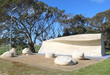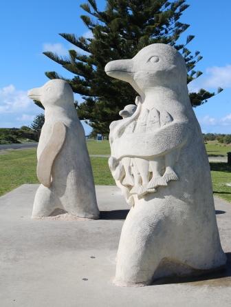 Another of Ivo Tadic’s sculptures can be found along the foreshore in town, at the eastern entrance to town, where three larger than life penguins carry some of the elements that life in Port MacDonnell entails, including a surfboard and some bounty from the sea.