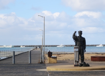 Driving along the foreshore there’s another sculpture to see, a lobster fisherman with lobster in hand, standing at the start of the town jetty. This life size bronze sculpture was created by sculptors Gille and Marc and represents the history and character of the area.