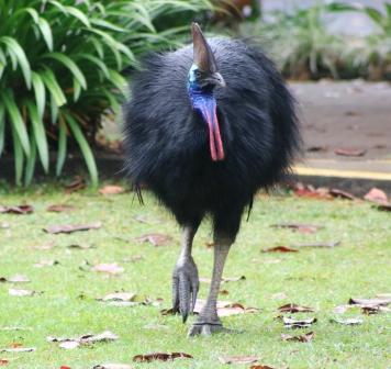 These huge flightless birds can be up to 1.8 metres tall and weigh up to 76 kilograms and to top that off, they have sharp claws an intimidating stare and a hard bony type helmet (casque) on their heads.