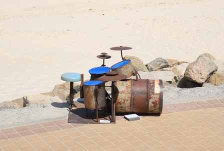 The large outdoor sculptures have to be sturdy enough to withstand being touched by the public and some even encourage viewers to touch, and play with them including ‘Recycled rhythm’ by Kalan Murphy, which won the junior category prize.