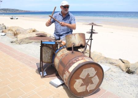 This year there were quite a few that referenced the algal bloom and the effects it’s having on South Australian waters, including this fish sculpture ‘Coming up for air’ by Philip Baines. It’s made of recycled metal, leaf springs, an old wheel and cogs and in the artist’s words, ‘as the ocean creatures are in trouble with the algal bloom, the fish come up for air unable to breathe in the sea. We need to be responsible for the land water that flushes out to the sea’.