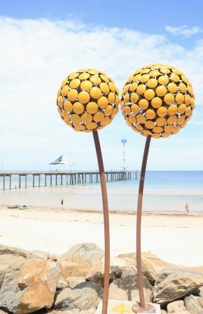 It’s that time of year again when South Australia’s largest sculpture exhibition is on at Brighton. The Brighton Jetty Sculptures can be found along the esplanade, either side of the jetty, and in a small park next to the Brighton Surf Lifesaving Club.
