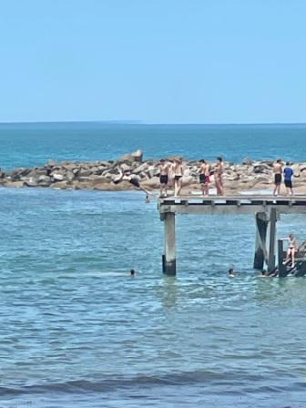There’s a small jetty, a pontoon for swimmers and for the safest day out in the water, stick to where the surf lifesavers have set up their flags on weekends.