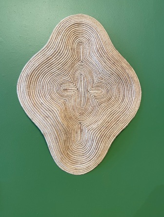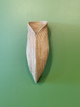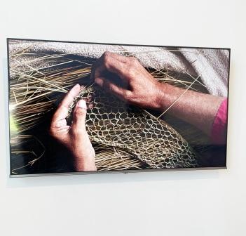 Some of the works to see in the exhibition include Seven Sister Baskets woven from freshwater rushes. The sister baskets are two mirror image baskets which are woven separately and then connected. They have to match perfectly or the weaver undoes and reweaves their work. These skills are continuing to be passed on to younger people in the community and they symbolize sisterhood and unity.
