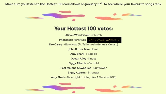 triple j hottest 100 Discover more from Caravan Correspondent Subscribe to get the latest posts sent to your email. Type your email… Subscribe Share this: Click to share on X (Opens in new window) X Click to share on Facebook (Opens in new window) Facebook Click to email a link to a friend (Opens in new window) Email Click to print (Opens in new window) Print Click to share on Reddit (Opens in new window) Reddit Like Loading...
